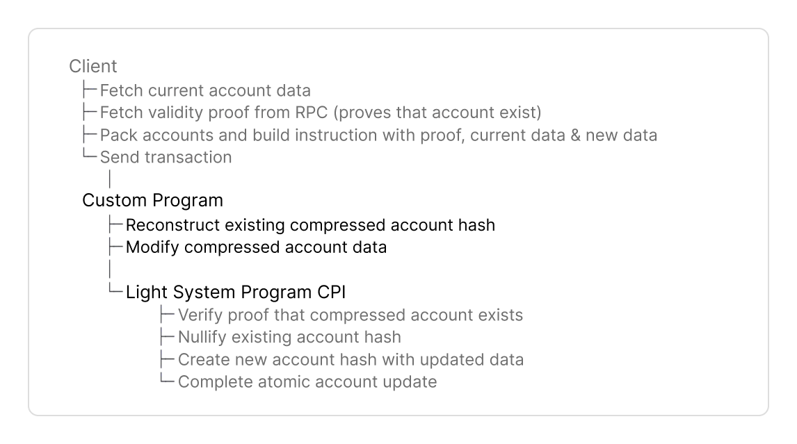 | Create-and-Update | Create new compressed accounts and update existing ones within a single instruction and one validity proof |